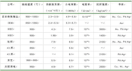 h.非連續式的生產工藝,便于基板燒成前對每一層布線和互連通孔進行質量檢查,有利于提高多層基板的成品率和質量,縮短生產周期,降低成本。表1給出集成電路中常用的幾種基板性能比較。