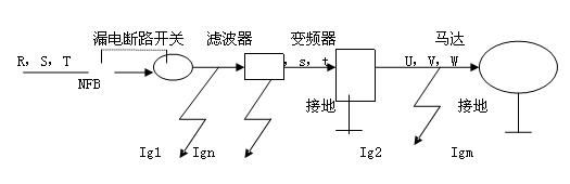 Ign:變頻器輸入側(cè)噪聲濾波器之漏電電流。