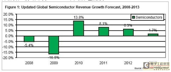圖1所示為iSuppli公司對于2008-2013年半導體產業的預測