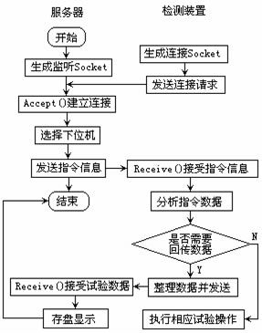 最后,通信結束后,通過CAsyncSocket::Close()函數銷毀對象。服務器與檢測裝置的通訊流程見圖3。