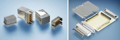 圖2:泰科電子的全新85 歐姆連接器套件(左)以及40Gb/s和100Gb/s以太網熱插拔解決方案(右)