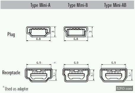 USB OTG規(guī)范中的3種接座(Mini-A、Mini-B、Mini-AB)、2種接頭(Mini-A、Mini-B),