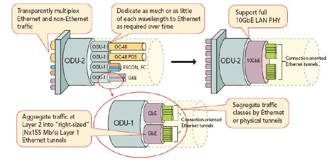 圖3.客戶側匯集的各種協(xié)議使得OTN成為高性價比通用基本結構