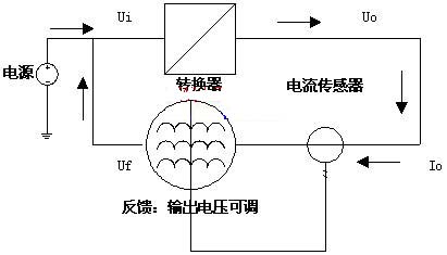 能量反饋部分和需要例行試用的轉換器組成一個能量循環(huán)系統(tǒng),在外電源的激勵下,系統(tǒng)保持額定功率運轉。由功率公式P=U*I,U由例行老化的電源轉換器穩(wěn)定,要保證該額定功率,就是保證輸出電流I,即能量反饋部分設計成恒流電路,所以系統(tǒng)在額定功率下,保證能量循環(huán)穩(wěn)定工作的等效控制量為需要例行使用的電能轉換器的輸出電流。