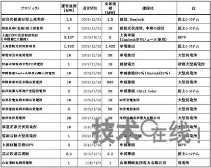 截止2010年4月上旬。此外還有其他大量在建項目,國內的太陽能發電規模正穩步擴大