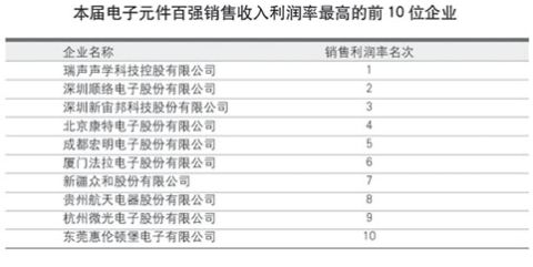 在本屆元件百強中,68家企業2009年利潤總額同比實現增長,增長率超過50%的企業達到了28家,更有16家企業的利潤總額實現了翻番增長。其中有24家企業的銷售收入反而下降。雖然部分企業利潤的增長是由于2008年下半年開始的國際金融危機將企業2008年的利潤總額拉低所致,但這些企業在短短一年中,贏利水平能如此快速恢復,企業自身的良好表現應該是更重要的因素。特別是對于一些更為優秀的企業來說,國際金融危機也許并不完全是壞事。