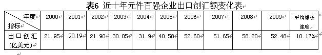 本屆元件百強企業(yè)中,97家企業(yè)有出口業(yè)務(wù),其中53家企業(yè)的出口下滑,有15家企業(yè)的出口下降程度在30%以上。出口總額超過1000萬美元的企業(yè)達(dá)到68家,比上屆少1家;出口總額超過5000萬美元的企業(yè)有25家,也比上屆少1家。但是,有16家企業(yè)2009年的出口額超過了1億美元,比上屆多1家。