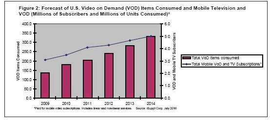 - 2010年美國移動VOD和移動電視用戶有望增至350萬個