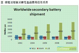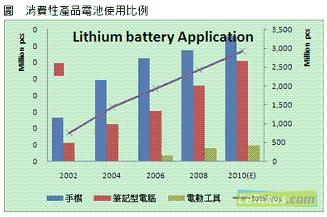 消費(fèi)性產(chǎn)品的發(fā)展趨勢迅速牽動電池產(chǎn)業(yè),根據(jù)集邦科技(TrendForce)旗下研究部門EnergyTrend表示,鋰電池隨著量產(chǎn)數(shù)量增加,價格與性能也逐漸為消費(fèi)者所接受,包括手機(jī)電池與NB電池,也以鋰電池為使用主流,而伴隨著新材料的革新,動力鋰電池也成功在電動工具以及兩輪車輛上展露頭角,讓鋰電池突破僅有消費(fèi)性產(chǎn)品的應(yīng)用局限。