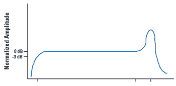 壓電傳感器可以感測滾軸所產(chǎn)生的振動頻率及超聲波噪聲。壓電傳感電路由MOSFET為其提供內(nèi)部緩沖,而驅(qū)動MOSFET的電流則來自A4的恒流源,通過交流耦合在內(nèi)部連接到濾波器。A1、A2及A3放大器組成一6極點低通濾波器并提供41.9dB的增益。取樣率為200kHz的ADC121S021模擬/數(shù)字轉(zhuǎn)換器負責(zé)將已放大及濾波的信號轉(zhuǎn)為數(shù)字信號。微處理器的軟件可以通過快速傅里葉變換(FFT)取得有關(guān)信號頻率及振幅的數(shù)據(jù)。圖中所示電路的通帶約為40kHz。圖2則顯示典型寬頻帶振動傳感器的傳遞函數(shù)。