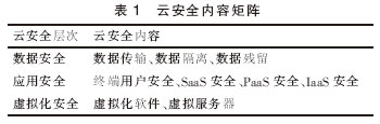 云安全架構(gòu)的一個(gè)關(guān)鍵特點(diǎn)是云服務(wù)提供商所在的等級(jí)越低,云服務(wù)用戶自己所要承擔(dān)的安全能力和管理職責(zé)就越多。下面對(duì)云計(jì)算安全領(lǐng)域中的數(shù)據(jù)安全、應(yīng)用安全和虛擬化安全等問(wèn)題(見(jiàn)表1)的應(yīng)對(duì)策略和技術(shù)進(jìn)行重點(diǎn)闡述。