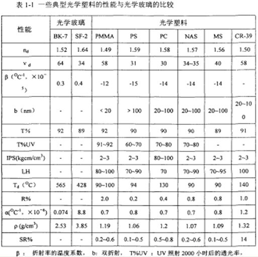 與傳統(tǒng)無機(jī)光學(xué)材料相比,盡管光學(xué)高分子材料的耐熱性、耐候性、耐磨性、耐溶劑性、抗吸濕性及光學(xué)均一性(雙折射、光學(xué)畸變)較差,折射率、色散范圍較窄,熱膨脹系數(shù)較大,但是聚合物光學(xué)材料具有密度小、耐沖擊、成本低、加工成型容易等優(yōu)點,近年來得到了廣泛的應(yīng)用。常用光學(xué)高分子材料有烯丙基二甘醇二碳酸酯等幾種熱固性樹脂和聚甲基丙烯酸甲酯、聚苯乙烯、聚碳酸酯、聚4-甲基戊烯-1、苯乙烯-丙烯腈共聚物等熱塑性光學(xué)樹脂。表1-1列出了一些常用光學(xué)高分子材料的特性。[page]