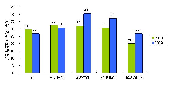 本次調(diào)查的結(jié)果印證了2010年電子行業(yè)所面臨的“缺貨”困境——2010年電子系統(tǒng)制造商與設(shè)計公司面臨的最普遍的采購風(fēng)險是無法供貨,43.6%的公司面臨著供應(yīng)商無法供貨的困擾。與2009年的調(diào)查做對比,2010年IC、分立器件、無源元件、機電元件、模塊/電池五大類物料價格有不同幅度增長,其中IC與分立器件漲幅最大,機電元件、模塊/電池漲幅最小;交貨期方面,IC、分立器件、無源元件交貨期都有所延長,而機電元件、模塊/電池交貨期分別縮短了5天和6天;貨款結(jié)算期方面,IC、分立器件貨款結(jié)算期均有所延長,無源元件、機電元件、模塊/電池的貨款結(jié)算期都縮短了。