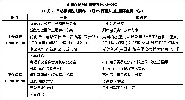 其中電路保護與電磁兼容技術研討會將聚焦過流過壓保護、防雷設計、ESD防護、EMC設計方案在工業、通信廣電、汽車與交通、新能源、軍工等行業的應用。論壇將著重覆蓋過流過壓保護元件選型、可靠電路設計、雷擊防護和EMC創新方案等議題。