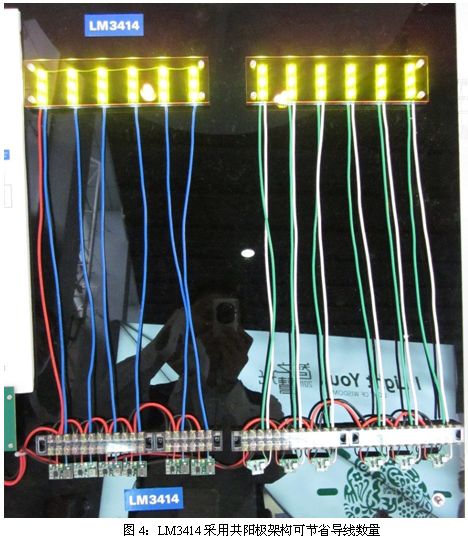 LM3414一款內置電流檢測電路的DC/DC LED 驅動器,無需外置檢測電阻,有助于節省系統成本及縮小方案體積。LM3414采用共陽極配置的浮動降壓拓撲結構,因此可以節省導線成本。用傳統方法,LED驅動IC與LED之間需要2N條導線,LM3414則只需要N+1條導線,節省近一半的導線,如果是遠距離連接,節省可觀的導線成本。