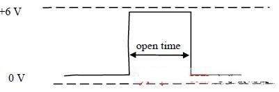 采用可控制開關的辦法難于完成測量,需采用其他辦法進行繼電器觸點通斷過程的模擬。首先對繼電器觸點處電壓波形進行分析,由于瞬時通斷測量儀接入抖閉觸點的電壓為6 V,通過抖斷觸點的電流為10 mA,當繼電器觸點出現抖閉現象時電壓波形應如圖3 所示(抖閉觸點在正常狀態時所加的+6 V 電壓在抖閉狀態時被直接短路,電位被鉗制在0 V),形成一個負跳變脈沖,其抖閉時間為脈沖寬度,而出現抖斷觸點的電壓波形如圖4 所示。