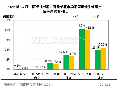 (圖) 2011年5-6月中國3G手機市場不同像素產品關注比例對比