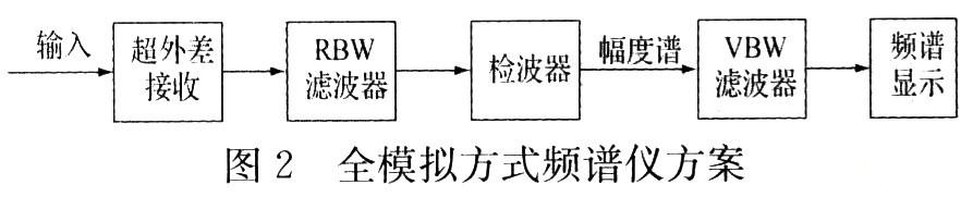 全模擬方式頻譜儀方案很好地詮釋了頻譜儀的基本組成,如圖2所示。