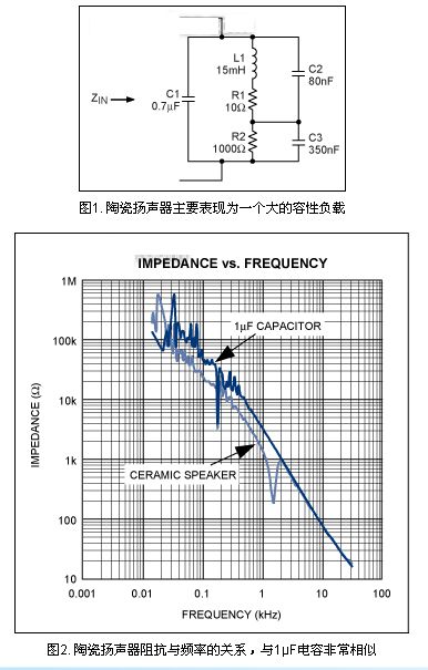 驅動陶瓷揚聲器的放大器電路具有與驅動傳統動圈式揚聲器不同的輸出驅動要求。陶瓷揚聲器的結構要求放大器驅動大電容負載,并在較高的頻率下輸出更大的電流,同時保持高輸出電壓。
