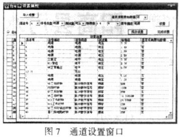 設置窗口見圖7,本窗口中可以設置每一路信號的屬性,也可以直接調出以前保存的設置,設置完成后即可按該設置進行測試。設置完成后,可以將本次的設置保存成文件,以便下次直接調出。