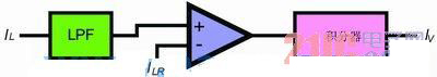 要減少IOUT(CL)的下降,建議使用一個可變的IV來取代一個固定的IV。IV的變化取決于IL(RIPPLE)的平均值:即輸出電流IOUT。在電流限制模式下,假如IOUT(CL)由于tD而減少,那么IV將會增加,直至IOUT(CL)達到ILR參考值。這樣,IOUT(CL)將不會再受到tD的影響。優(yōu)化提案的框圖如圖3所示。當中采用一個低通濾波器(LPF)來均化IL及其輸出,并且給出一個誤差放大器的ILR參考值。采用一個積分器,通過誤差放大器的輸出可以產(chǎn)生一個可變IV。結果,I可達到一個令IOUT(CL)與ILR相等的值,而IOUT(CL)也可脫離tD的影響。