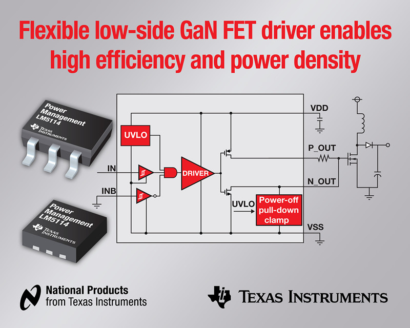 日前,德州儀器 (TI) 宣布推出用于配合高密度電源轉換器中 MOSFET 與氮化鎵 (GaN) 功率場效應晶體管 (FET) 使用的低側柵極驅動器。LM5114 可驅動同步整流器與功率因數轉換器等低側應用中的 GaN FET 與 MOSFET。該系列加上 2011 年推出的業界首款 100 V 半橋 GaN FET 驅動器 LM5113,可為高性能電信、網絡以及數據中心應用中使用的大功率 GaN FET 與 MOSFET 提供完整的隔離式 DC/DC 轉換驅動器解決方案。