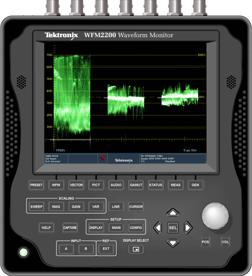• 用于測試設備同步信號(“House Black”)的輸入,包括獨特的同步顯示,這簡化了設置和驗證。此外,為了查找計時問題和驗證一致性,WFM2200還提供了查看模擬參考信號的功能。