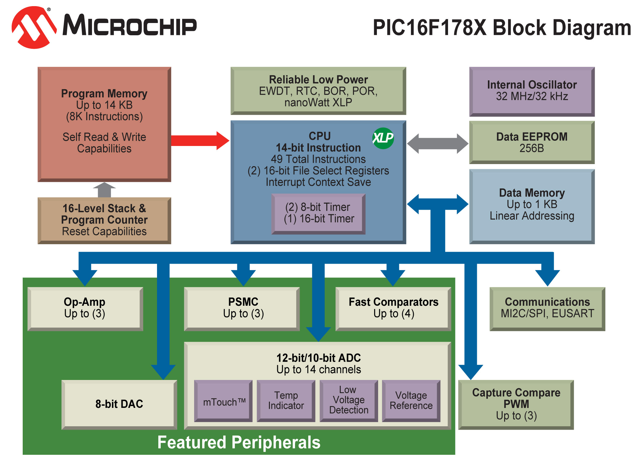 - 具有片上12位ADC、8位DAC、運算放大器、高速比較器