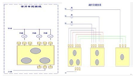 - 結合具體的應用系統給出單路、雙路和三路開關的安裝方法