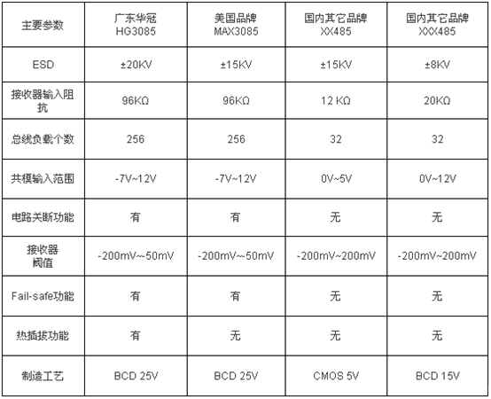 HG3085與MAX3085主要參數對比