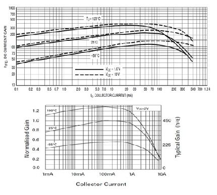 事實上,晶體管將與其組件進行配對(MMBT3904用于3906,MMBT2907用于2222)。這兩個不同的配對僅用于比較。這些器件還具有更高的電流和更高的hfe, 如FMMT618/718對,其在6A電流時具有100 的hfe(請參見圖2)。與集成驅動器不同,分立器件是更低成本的解決方案,且有更高的散熱和電流性能。