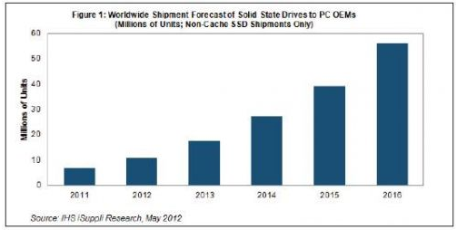 據(jù)IHS iSuppli公司的存儲市場簡報,隨著固態(tài)硬盤(SSD)的成本下降,以及超級本(Ultrabook)等產(chǎn)品的需求給其帶來活力,PC OEM廠商可能會增加使用SSD,從而進一步擴大其出貨量。