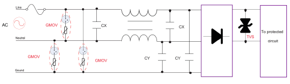 由于金屬陶瓷氣體放電管存在續(xù)流的問題而不能直接用在有源電路上進行保護,因而在有源產(chǎn)品上的防護必須要利用限壓型的保護器件(壓敏電阻或防雷型的HYPERFIX 等)配合使用。