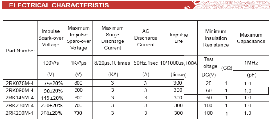 • 一般依據(jù)客戶產(chǎn)品防雷測試等級的要求進行選取,來決定所選放電管的通流量及相應的尺寸規(guī)格
