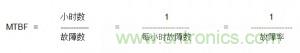 想要將一個(gè)部件的材料清單(BOM)與另一個(gè)部件的材料清單進(jìn)行比較會(huì)怎么樣呢?能不能將每個(gè)元件的MTBF簡單地加在一起,來確定總體可靠性呢?可惜的是:不可以。這是因?yàn)镸TBF代表的是出現(xiàn)故障的小時(shí)數(shù),按照加法計(jì)算是不起作用的。然而,故障率,一個(gè)代表每小時(shí)發(fā)生故障的次數(shù),是可以相加。慶幸的是將MTBF轉(zhuǎn)換成故障率僅是一個(gè)很簡單分?jǐn)?shù)關(guān)系。以下是公式: