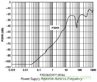 電源抑制(PSR)測量電源紋波如何與ADC輸入耦合,顯現在其數字輸出上。如果PSR有限,相對于輸入電平,電源線上的噪聲將僅會受到30至50 dB的抑制。