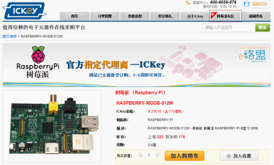國際知名電子產品分銷商E絡盟(原派睿電子)已于近日正式授權ICKey平臺成為其“樹莓派”產品的中國區總代理,國內個人用戶即日起可通過ICKey網站直接在線訂購“樹莓派”(RASPBERRY PI B型 ,512MB)產品,準備體驗世界上最小的卡片式臺式機!