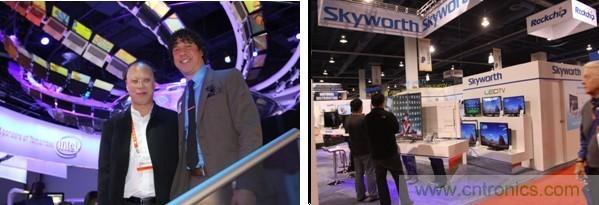(左圖為市平板顯示行業(yè)協(xié)會(huì)副秘書長梁毅與Inter公司的victor合影;右圖為中國企業(yè)創(chuàng)維展位)
