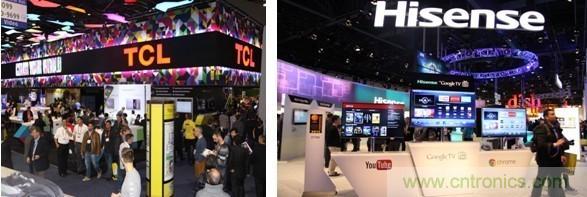 (圖為美國CES展會(huì)現(xiàn)場的中國企業(yè)TCL、海信展位)