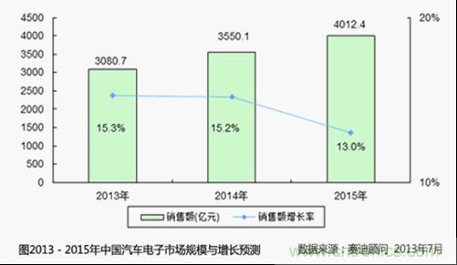 2013-2015年中國(guó)汽車(chē)電子市場(chǎng)規(guī)模與增長(zhǎng)預(yù)測(cè)