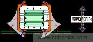 如果向高介電常數型的電容器(諸如`溫度特性為:B, R, X5R, X7R,Y5V的電容器)施加交流電壓,由于電致伸縮效應,會造成多層電容器芯片伸縮注)。根據電介質一般的泊松比為0.3的特性,會在與積層方向垂直及平行的方向上產生伸縮(如圖2所示),其結果是基板表面發生振動從而產生人耳可聞的聲音。通常情況下,因為這種振動頻率遠遠高于人耳可聽頻率范圍(20Hz~20kHz),所以即使向單體電容器施加人耳可聽頻率范圍的信號電壓,也不會形成人耳可聞程度的聲音(嘯叫)。但是,如果將電容器封裝于基板,那么該振動會傳導至基板,振動就會放大(諧振)。其結果是人耳可以感知到類似于“吱吱”的聲音。雖然芯片和基板的振幅僅為1pm~1nm左右,但其聲音卻大到人耳輕易識別的程度。