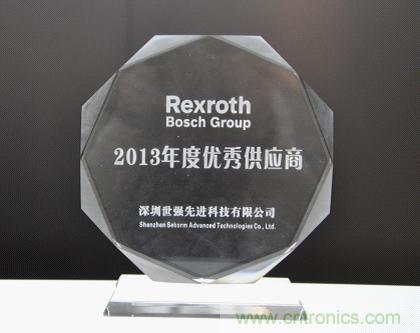 世強(qiáng)獲博世力士樂(lè)(西安)2013年度優(yōu)秀供應(yīng)商獎(jiǎng)