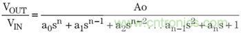 巴特沃茲濾波器傳輸函數(shù)包括所有極點(diǎn),并且沒有零,其表達(dá)式如下: