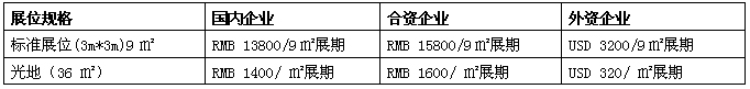 標準展位費用:(注:雙面開口加20%開口費)