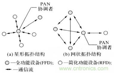 為降低成本,ZigBee標準中定義了兩種類型的設備:全功能設備( full function device, FFD)和簡化功能設備( reduced function device, RFD ) 。