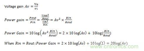 對于兩種放大器拓撲,當輸入和輸出阻抗相同時,電壓增益(dB)和功率增益(dB)才相等。然而,對于電流放大器,電壓增益和功率增益將隨著負載條件而變化,而對于電壓放大器,僅功率增益隨負載改變。