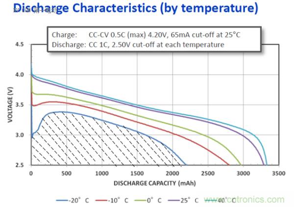 容量測試Output:溫度與容量(能量)關(guān)系表。以時(shí)間T為X軸,以電壓V為Y軸。不同溫度下1C放電截止在X軸上的點(diǎn)為容量與溫度的關(guān)系。而各個放電曲線與X、Y軸形成的面積之比就是不同溫度下的可用能量之比。如下圖所示:-20℃時(shí)的電池可用能量(Wh) = 陰影部分的面積S。由此可見,SOE比SOC能更加準(zhǔn)確的表示出剩余的能量,從而更準(zhǔn)確的評估剩余里程。