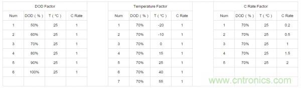 在循環(huán)測試上可以根據(jù)DOD、溫度、倍率這三個重要影響因素設(shè)計(jì)一組“單因素實(shí)驗(yàn)”。