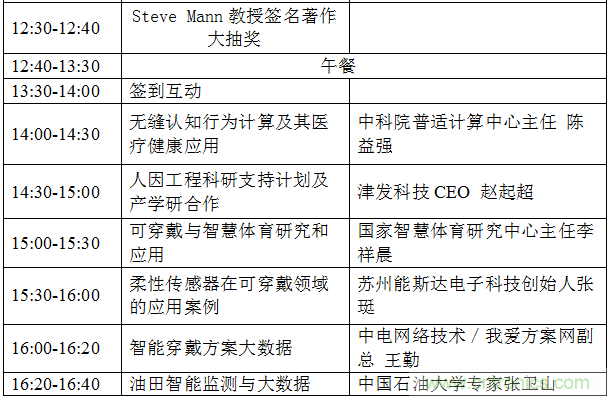 Wearable2017技術(shù)與產(chǎn)業(yè)論壇將從可穿戴和人機(jī)交互技術(shù)的起源,發(fā)展和應(yīng)用,探討前沿技術(shù)和服務(wù)社會的創(chuàng)新結(jié)合,Steve Mann教授將分享人本智能,可穿戴與物聯(lián)網(wǎng)全新的架構(gòu),其他演講嘉賓和主題包括:加拿大工程院士姜晶分享VR和AR在工業(yè)的應(yīng)用,國家千人專家,安進(jìn)醫(yī)療董事長趙偉分享物聯(lián)網(wǎng)技術(shù)與產(chǎn)業(yè)的創(chuàng)新融合,中國可穿戴領(lǐng)域最早的開拓者陳東義老師談可穿戴與AR在工業(yè)領(lǐng)域的應(yīng)用,中科院普適計(jì)算研究中心主任陳益強(qiáng)分享殘疾人的遠(yuǎn)程交互及可穿戴在醫(yī)療健康領(lǐng)域的應(yīng)用,蘇州能斯達(dá)電子科技創(chuàng)始人張珽介紹創(chuàng)新的柔性壓力傳感器在可穿戴領(lǐng)域的應(yīng)用案例,我愛方案網(wǎng)聯(lián)合創(chuàng)始人王勤分享智能穿戴和人工智能方案大數(shù)據(jù),中國石油大學(xué)專家張衛(wèi)山分享油田檢測與大數(shù)據(jù)。關(guān)于前沿技術(shù)和創(chuàng)新趨勢的領(lǐng)袖對話論壇,嘉賓包括國家體育總局智慧研究中心的李祥晨主任,海爾集團(tuán)科技專家,中科院深圳先進(jìn)技術(shù)研究院醫(yī)工所副所長王磊,中興養(yǎng)老健康CEO蘆東昕和易瞳科技CTO艾韜等。7月28日在深圳的論壇現(xiàn)場將有十多個創(chuàng)新的可穿戴醫(yī)療健康和VR/AR的產(chǎn)品展示,各方資源將共同成立可穿戴與VR/AR的創(chuàng)新中心。