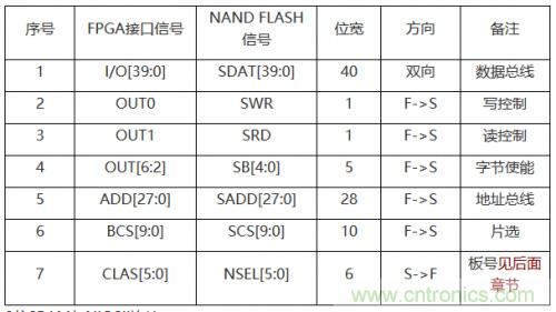 如表2,詳述了40位NAND FLASH與ABUS的連接關系。